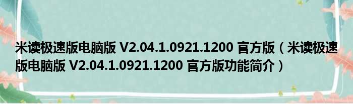 导读 大家好,关于米读极速版电脑版 V2 04 1 0921 1200 官方版,米读极速版电脑版 V2 04 1 0921 1200 官方版功能简介这个很多人还不知道,小勒