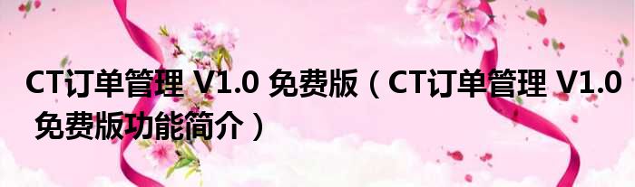 CT订单管理 V1.0 免费版(CT订单管理 V1.0 免费版功能简介)