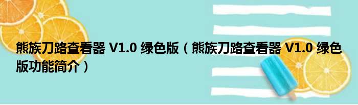 熊族刀路查看器 V1.0 绿色版(熊族刀路查看器 V1.0 绿色版功能简介)