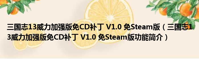 三国志13威力加强版免CD补丁 V1.0 免Steam版(三国志13威力加强版免CD补丁 V1.0 免Steam版功能简介)