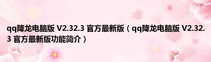 qq降龙电脑版 V2.32.3 官方最新版(qq降龙电脑版 V2.32.3 官方最新版功能简介)