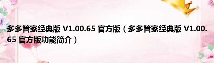 多多管家经典版 V1.00.65 官方版(多多管家经典版 V1.00.65 官方版功能简介)
