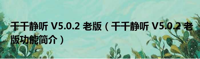 千千静听 V5.0.2 老版(千千静听 V5.0.2 老版功能简介)