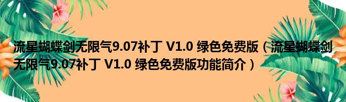 流星蝴蝶剑无限气9.07补丁 V1.0 绿色免费版(流星蝴蝶剑无限气9.07补丁 V1.0 绿色免费版功能简介)