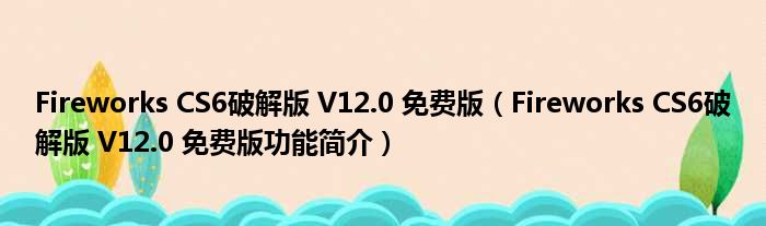 Fireworks CS6破解版 V12.0 免费版(Fireworks CS6破解版 V12.0 免费版功能简介)