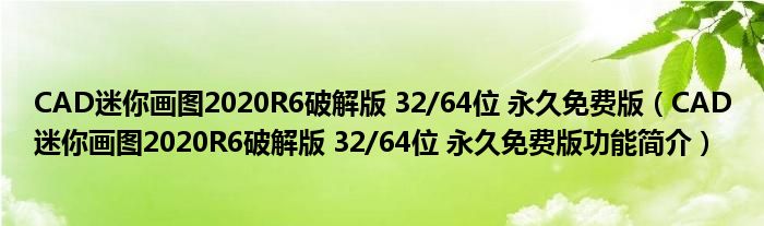 CAD迷你画图2020R6破解版 32/64位 永久免费版(CAD迷你画图2020R6破解版 32/64位 永久免费版功能简介)