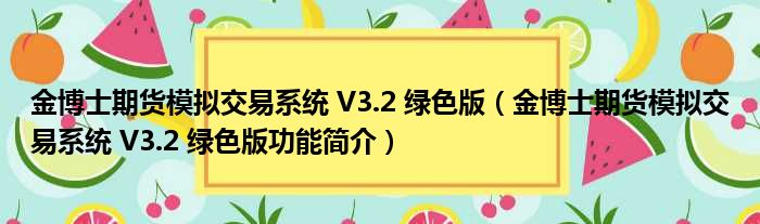 金博士期货模拟交易系统 V3.2 绿色版(金博士期货模拟交易系统 V3.2 绿色版功能简介)