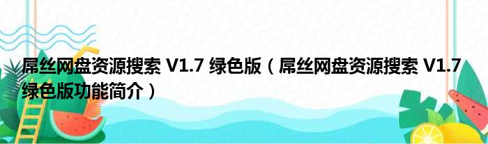 屌丝网盘资源搜索 V1.7 绿色版(屌丝网盘资源搜索 V1.7 绿色版功能简介)