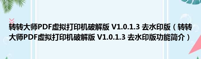 转转大师PDF虚拟打印机破解版 V1.0.1.3 去水印版(转转大师PDF虚拟打印机破解版 V1.0.1.3 去水印版功能简介)