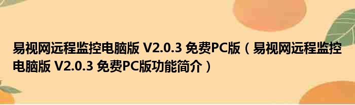 易视网远程监控电脑版 V2.0.3 免费PC版(易视网远程监控电脑版 V2.0.3 免费PC版功能简介)