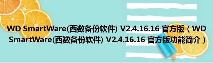WD SmartWare(西数备份软件) V2.4.16.16 官方版(WD SmartWare(西数备份软件) V2.4.16.16 官方版功能简介)