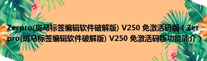 Zerpro(斑马标签编辑软件破解版) V250 免激活码版(Zerpro(斑马标签编辑软件破解版) V250 免激活码版功能简介)