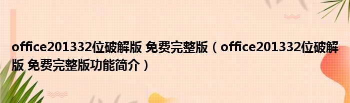 office201332位破解版 免费完整版(office201332位破解版 免费完整版功能简介)