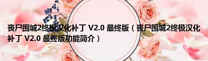 丧尸围城2终极汉化补丁 V2.0 最终版(丧尸围城2终极汉化补丁 V2.0 最终版功能简介)