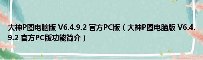 大神P图电脑版 V6.4.9.2 官方PC版(大神P图电脑版 V6.4.9.2 官方PC版功能简介)