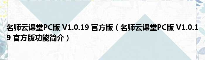 导读 大家好,关于名师云课堂PC版 V1 0 19 官方版,名师云课堂PC版 V1 0 19 官方版功能简介这个很多人还不知道,小勒来为大家解答以上的问题,