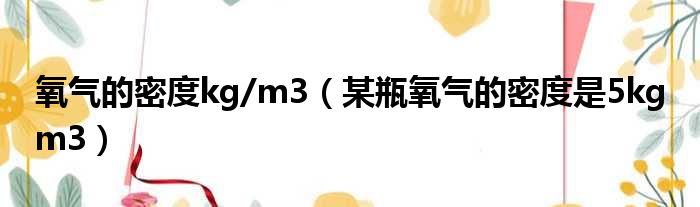 导读 大家好,今天小六子来为大家解答以下的问题,关于氧气的密度kg m3,某瓶氧气的密度是5kg m3这个很多人还不知道,现在让我们一起来看看吧!1