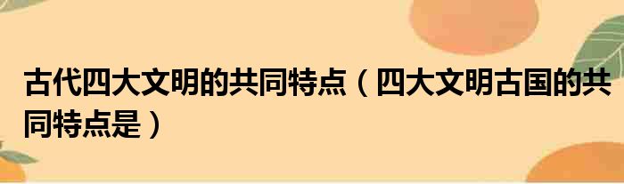 古代四大文明的共同特点(四大文明古国的共同特点是)