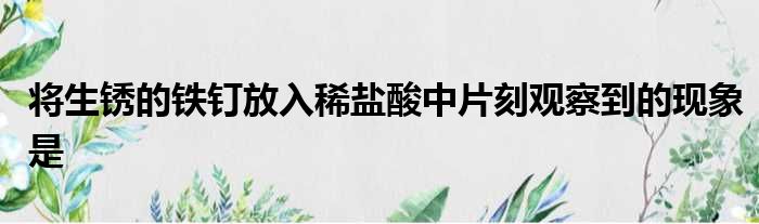 导读 大家好,今天小六子来为大家解答以下的问题,关于将生锈的铁钉放入稀盐酸中片刻观察到的现象是这个很多人还不知道,现在让我们一起来看看吧