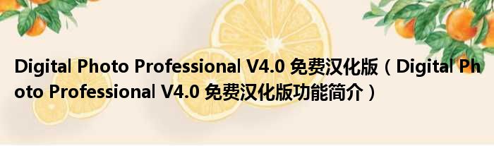 Digital Photo Professional V4.0 免费汉化版(Digital Photo Professional V4.0 免费汉化版功能简介)