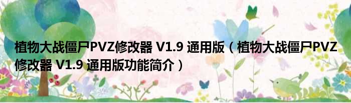 植物大战僵尸PVZ修改器 V1.9 通用版(植物大战僵尸PVZ修改器 V1.9 通用版功能简介)