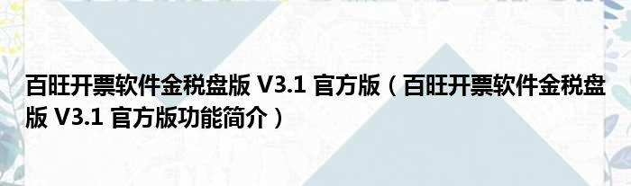 百旺开票软件金税盘版 V3.1 官方版(百旺开票软件金税盘版 V3.1 官方版功能简介)