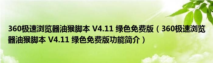 360极速浏览器油猴脚本 V4.11 绿色免费版(360极速浏览器油猴脚本 V4.11 绿色免费版功能简介)