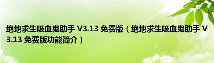 绝地求生吸血鬼助手 V3.13 免费版(绝地求生吸血鬼助手 V3.13 免费版功能简介)