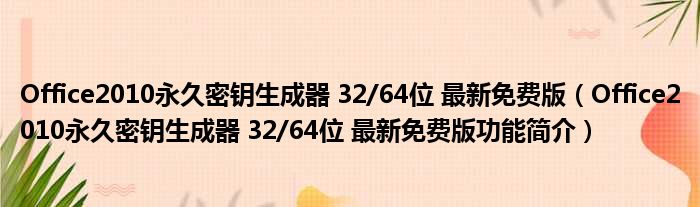 导读 大家好,关于Office2010永久密钥生成器 32 64位 最新免费版,Office2010永久密钥生成器 32 64位 最新免费版功能简介这个很多人还不知道,