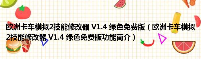 导读 大家好,关于欧洲卡车模拟2技能修改器 V1 4 绿色免费版,欧洲卡车模拟2技能修改器 V1 4 绿色免费版功能简介这个很多人还不知道,小勒来为