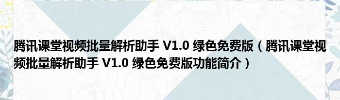 腾讯课堂视频批量解析助手 V1.0 绿色免费版(腾讯课堂视频批量解析助手 V1.0 绿色免费版功能简介)