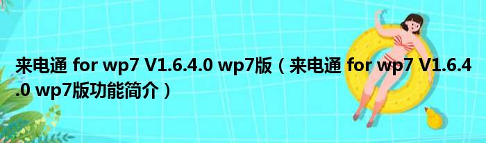 导读 大家好,关于来电通 for wp7 V1 6 4 0 wp7版,来电通 for wp7 V1 6 4 0 wp7版功能简介这个很多人还不知道,小勒来为大家解答以上的问