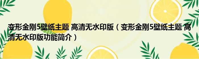 变形金刚5壁纸主题 高清无水印版(变形金刚5壁纸主题 高清无水印版功能简介)