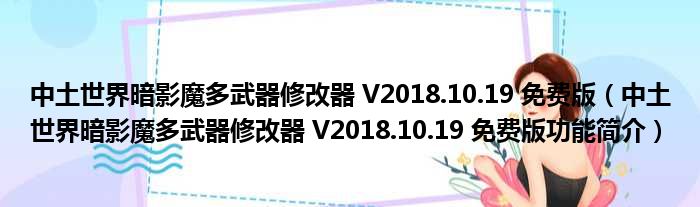 中土世界暗影魔多武器修改器 V2018.10.19 免费版(中土世界暗影魔多武器修改器 V2018.10.19 免费版功能简介)