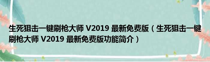 导读 大家好,关于生死狙击一键刷枪大师 V2019 最新免费版,生死狙击一键刷枪大师 V2019 最新免费版功能简介这个很多人还不知道,小勒来为大家