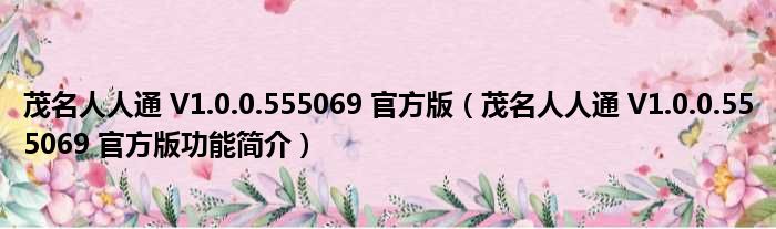 导读 大家好,关于茂名人人通 V1 0 0 555069 官方版,茂名人人通 V1 0 0 555069 官方版功能简介这个很多人还不知道,小勒来为大家解答以上的问