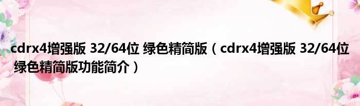 cdrx4增强版 32/64位 绿色精简版(cdrx4增强版 32/64位 绿色精简版功能简介)