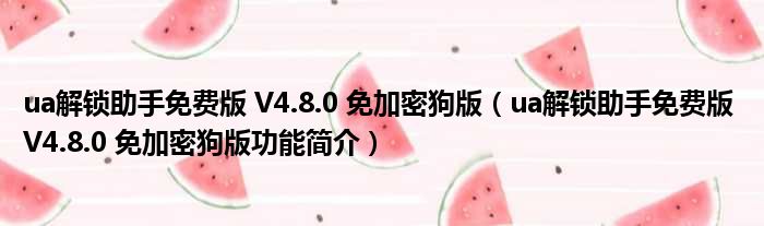 ua解锁助手免费版 V4.8.0 免加密狗版(ua解锁助手免费版 V4.8.0 免加密狗版功能简介)