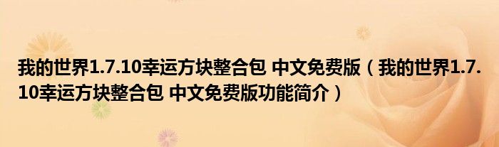 导读 大家好,关于我的世界1 7 10幸运方块整合包 中文免费版,我的世界1 7 10幸运方块整合包 中文免费版功能简介这个很多人还不知道,小勒来为大