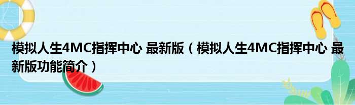 导读 大家好,关于模拟人生4MC指挥中心 最新版,模拟人生4MC指挥中心 最新版功能简介这个很多人还不知道,小勒来为大家解答以上的问题,现在让我