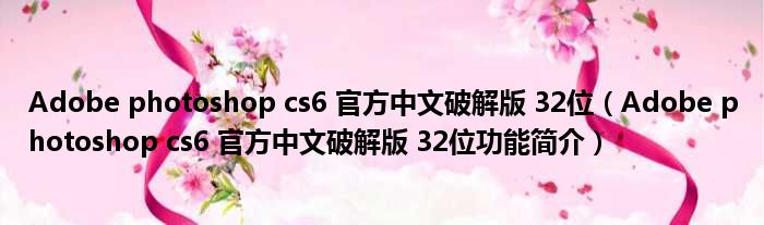 Adobe photoshop cs6 官方中文破解版 32位(Adobe photoshop cs6 官方中文破解版 32位功能简介)