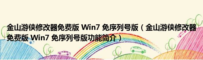 金山游侠修改器免费版 Win7 免序列号版(金山游侠修改器免费版 Win7 免序列号版功能简介)
