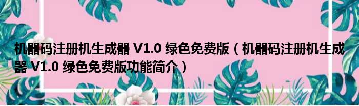 机器码注册机生成器 V1.0 绿色免费版(机器码注册机生成器 V1.0 绿色免费版功能简介)