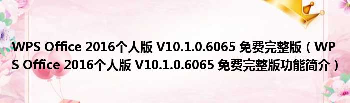 WPS Office 2016个人版 V10.1.0.6065 免费完整版(WPS Office 2016个人版 V10.1.0.6065 免费完整版功能简介)