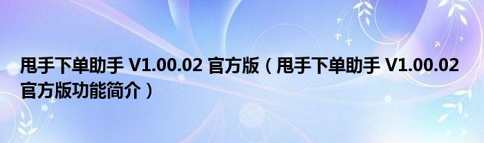 甩手下单助手 V1.00.02 官方版(甩手下单助手 V1.00.02 官方版功能简介)