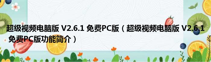 超级视频电脑版 V2.6.1 免费PC版(超级视频电脑版 V2.6.1 免费PC版功能简介)