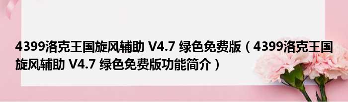4399洛克王国旋风辅助 V4.7 绿色免费版(4399洛克王国旋风辅助 V4.7 绿色免费版功能简介)