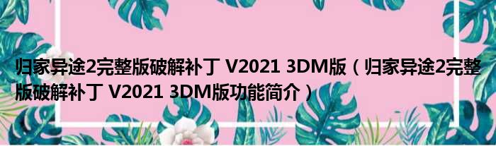 归家异途2完整版破解补丁 V2021 3DM版(归家异途2完整版破解补丁 V2021 3DM版功能简介)
