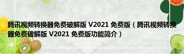 腾讯视频转换器免费破解版 V2021 免费版(腾讯视频转换器免费破解版 V2021 免费版功能简介)