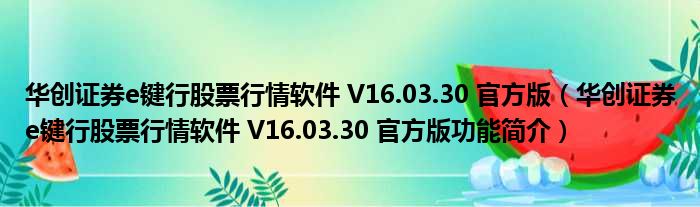 华创证券e键行股票行情软件 V16.03.30 官方版(华创证券e键行股票行情软件 V16.03.30 官方版功能简介)